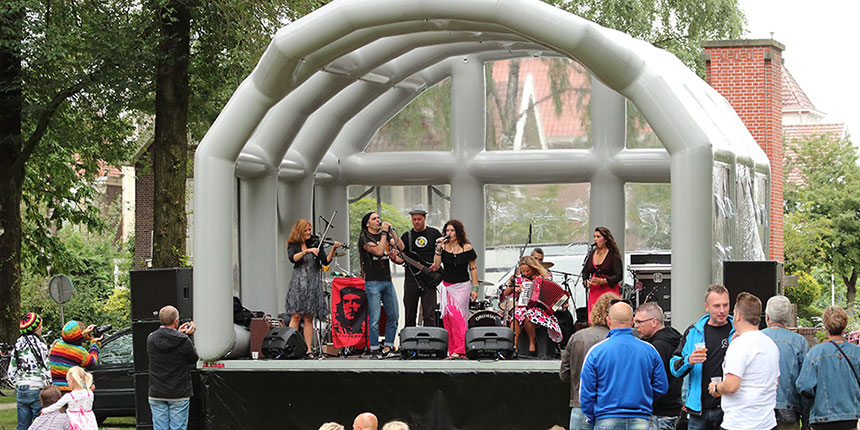 Een opblaas podium is geen gebakken lucht
